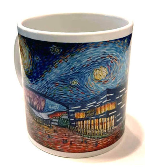Deze mok toont de Ahoy Rotterdam, geschilderd Als Van Gogh. Hiermee maak je koffie, thee en koude dranken herkenbaar: op en top Rotterdams. Deze mok is fijn voor jezelf en tof om te geven! Vier het leven met iets moois!