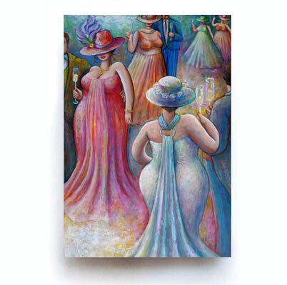 Prachtig schilderij uit de serie Big Beautiful Women. Op zowel groot als klein formaat zorgt Fancy Party voor een gezellig feest aan de wand vanwege de sprankelende compositie en fijne kleuren.