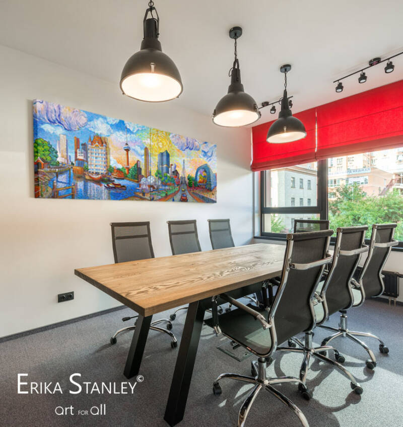 Erika Stanley bracht hiervoor een aantal schilderijen bij elkaar uit haar serie Rotterdam Als Van Gogh.