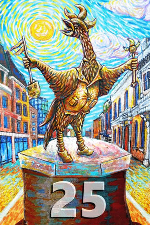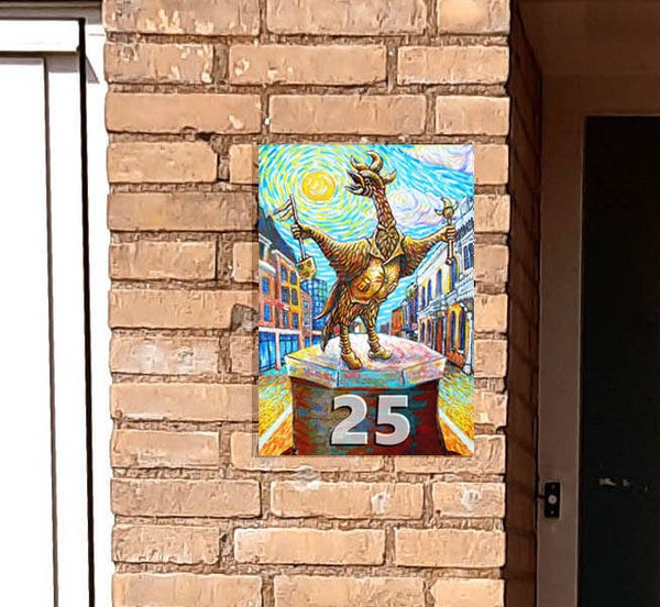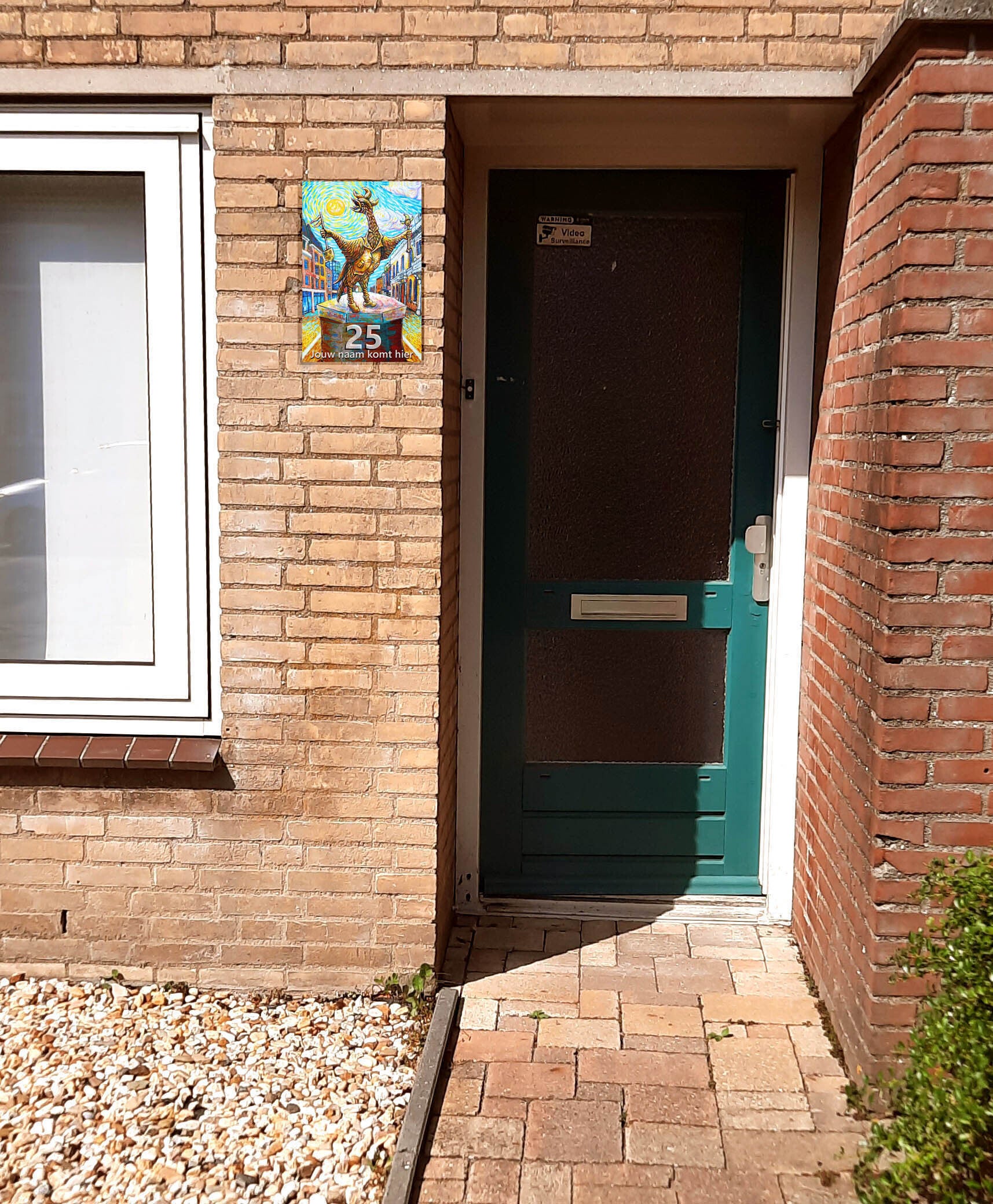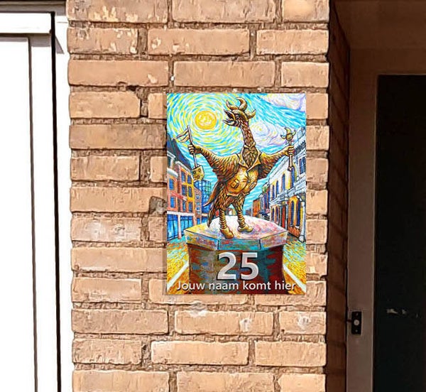 Dit huisnummerbord toont de Roosendaalse Tullepetaon, geschilderd Als Van Gogh. De herkenbare stijl en het warme kleurgebruik zorgen ervoor dat elk huisbezoek begint met een goed gevoel.